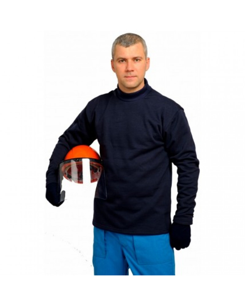 В межсезонье и в холодные зимние дни пользователи защитных комплектов нуждаются в дополнительной защите от холода и ветра. Поэтому был разработан термостойкий свитер. Одевается он непосредственно под термостойкий комплект и усиливает защиту от теплового фактора электрической дуги, обеспечивает абсолютный комфорт.